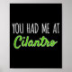You Had Me At Cilantro Funny Herb Food Quote Poster