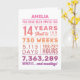 Personalized “You Have Been Loved For 14 Years” birthday card featuring milestone numbers—years, months, weeks, days, hours, and minutes. Add the recipient’s name for a custom touch and edit the inside message to make it your own. A unique, heartfelt birthday card perfect for a 14th birthday milestone celebration.
