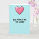 This Valentine’s Day card puts a funny twist on romance. A bright pink, candy-style heart sits at the top on a light blue background. Below it, the message “YOU REPULSE ME THE LEAST” appears in black cursive for a fun, sarcastic tone.