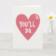 This Valentine’s Day card uses humor and charm to share affection in a simple, bold way. At the center is a large, soft pink heart with a rounded shape that feels warm and inviting. Printed across the heart in crisp white block letters is the message, “YOU’LL DO.” making the statement impossible to miss. Two small white curved accents near the top of the heart add a gentle highlight that gives the heart extra dimension. The background is a light cream tone with subtle diagonal line texture, adding depth without distracting from the message. This card is perfect for couples who appreciate honesty, humor, and love that doesn’t take itself too seriously. ❤️💌🍫.