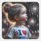 Young American Girl Watching Fireworks Quadratischer Aufkleber