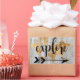 Ein niedliches Design mit einem gol-den-Text-Satz und einer Goldkarte der Welt auf einem grauen Hintergrund. Künstler: Studio W