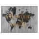 Ein niedliches Design mit einem goldenen Text und einer schwarzen Weltkarte auf grauem Hintergrund. Künstler: Studio W