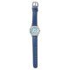 Kinderuhr aus Edelstahl mit blauem Lederarmband