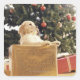Young Labrador Leaning an a Christmas Present Quadratischer Aufkleber