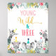 Young Wild & Three Pink Party Animal Birthday Sign Poster