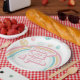 Young Wild und Three Retro Regenbogen und Peace signalisiert 3. Geburtstagseinladung mit Schriftart und Farben im Stil der 70er Jahre.