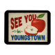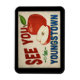 Ein charmanter Youngstown Ohio Vintage Tramwall Kühlschrank Magnet mit einem schönen roten Apfel, zusammen mit lustigen Retro-Text, der sagt: "See you in Youngstown"