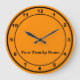Your Family Name on Orange Round Wall Clock Große Wanduhr