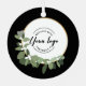 The ornament features a sleek and modern design, with a sophisticated wreath in green, white, and gold encased within a stylish black circle frame. The elegant color combination exudes professionalism and elegance, making it the ideal ornament to represent your brand.