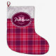 YOUR MONOGRAM ON LACE & PINK TARTAN PLAID PATTERN GROßER WEIHNACHTSSTRUMPF