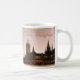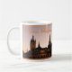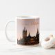 Sonnenuntergang hinter den wunderschönen Sehenswürdigkeiten der Tuchhalle und der St. Martins Kirche in Ieper (Ypres). Die Stadt ist ein sehr beliebtes Touristenziel und ein Schwerpunkt der Erinnerung an den Krieg. Große Souvenir-Tasse Ihrer Reise nach Belgien