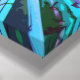 Ich arbeite seit geraumer Zeit mit einem digital manipulierten Foto einer toten Yucca-Pflanze, das sie in eine Reihe digitaler Entwürfe verwandelt. Dieser ist sehr dynamisch in den Farben Türkis, Magenta, Blau und Grün.