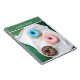 Dieses Notizbuch enthält drei mattierte Donuts, Blau, Rosa und Schokolade. Melde mich, wenn du Hilfe brauchst oder spezielle Wünsche hast.