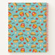 Spiralrezeptur-Notizbuch mit einem Muster von Käsepressen, Pommes frites, Herzen und Sternen.