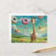 Giraffe im Land der Milch und des Honigs mit Donuts, die vom Himmel fallen