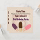 Eine leckere Party Einladung mit drei zarten Geschmacksrichtungen von Eis-Pop. Trauben, Schokolade und Wassermelone. Passen Sie Ihre Party-Informationen nach Ihren Wünschen an.