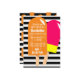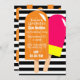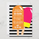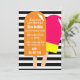 Stilvoll und jugendlich aussehend Kindergeburtstagsfeier, mit Grafiken von zwei bunten Popsikeln auf einem schwarz-weißen, waagerecht gestreiften Hintergrund. Der individuelle Text ist für den besonderen Tag Ihres Kindes personalisiert.