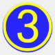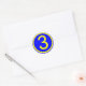 Zahl 3 im Kreis, blauer Hintergrund Runder Aufkleber