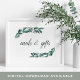 Dieses elegante botanische Schild, das auf unsere Hochzeitskollektion "Abundant Foliage" abgestimmt ist, lasse den Gästen zu wissen, wo sie ihre Karten und Geschenke ablegen können. Personalisieren Sie sich mit einer Textzeile in kalligrafischer Schriftzeichen (mit "Karten & Geschenke" gezeigt), gerahmt durch üppige Aquarellpflanzen und eukalyptus-Blätter.