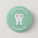 Lächelnder Zahn des Cartoon auf runden Abzeichen zur Gewohnheit mit Ihrem eigenen Text.