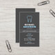 Stilvolle, dunkelgraue, vertikale Zahnarzt- oder Zahnarztkarte mit einer blauen Kontur eines Zahnes. Personalisierbarer Name, Titel, Firmenname und Kontaktinformationen auf der Vorderseite. Dunkelgrauer Rücken. Ein gewagtes und modernes Design für Zahnarzt, Hygienespezialist oder andere zahnärztliche .