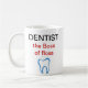 Zahnarztthema-Kaffee-Tassen mit Zahnsymbol und lustigem Sprichwort Zahnarzt der Chef der Glasschlacke. Entworfen als Geschenk oder Gaggeschenk für einen Zahnarzt, einen Zahnarzthelfer oder förderndes ein Geschenk des Zahnarztbüros.