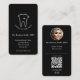 Die elegante moderne zahnärztliche Kieferorthopädie Dental Black Gray Visitenkarte. Mit seinem atemberaubenden silbernen Zahlopo, dem runden Foto, dem QR-Code und dem in opulentem Grau anpassbaren Text verströmt diese Karte Eleganz und Raffinesse.