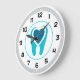 Eine berufliche Wand-Uhr mit einem Bild eines Zahnes für Zahnarztpraxis, Zahnarztpraxis oder Zahnarztpraxis. Personalisiert mit Ihren zahnärztlichen Praxisinformationen.