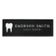 Personalisierter, beruflicher Zahnarztassistent oder Zahnarztbüro mit weißem Zahnlogo. Die Hintergrundfarbe ist standardmäßig schwarz, kann aber in jede Farbe geändert werden. Ändern Sie den Schriftart, den Text (Name, Nachname, Jobtitel, Klinikname usw.) oder die Logo-Farbe. Einfach zu individualisierende Vorlage ideal für Zahnärzte, Zahnärzte, Mundhygiene oder andere Mitarbeiter.