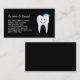 Elegante Visitenkarte für Zahnärzte mit einem glücklichen Cartoon Zahn mit blauer Zahnpasta auf schwarzem Hintergrund. Individuell gestaltbare Textbereiche für Zahnärzte, Kieferorthopäden, Kliniken, Telefonnummer, Adresse, E-Mail usw. Geeignet für Zahnärzte, Kieferorthopäden, Zahnpflegerinnen und Zahnärzte sowie für Zahnärzte aller Art.