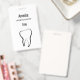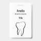 Name Abzeichen mit einer Abbildung eines Zahnzahs aus schwarzer Kontur.