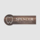 Zahnarztmarken mit einer Kontur für Farbzahn auf einem gedruckten Bild von dunklem Holzkorn. Sie können die Schriftart und Farben mit dem Designwerkzeug ändern.