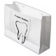 Geschenktasche mit einer Abbildung eines Zahnzahs aus schwarzer Kontur.