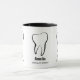 Eine Tasse mit einer Abbildung eines Zahnzahs aus schwarzer Kontur.