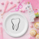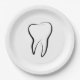 Papier Teller mit einer Abbildung eines Zahnzahs aus schwarzer Kontur.
