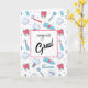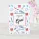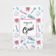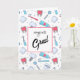 Eine Abschluss-Grußkarte mit einem Dentalmotiv. Mit bunten Illustrationen von Zähnen, Zahnbürsten und verschiedenen Zahnwerkzeugen.