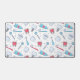 Schreibtischmatte mit einem Dentalmotiv. Mit bunten Illustrationen von Zähnen, Zahnbürsten und verschiedenen Zahnwerkzeugen.