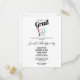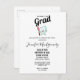 Einladung zur Graduation Party mit einer Illustration eines großen weißen Cartoon, der glücklich eine rote Zahnbürste hält und den Daumen nach oben zeigt.