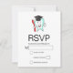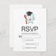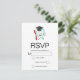 Eine RSVP-Karte mit einer Abbildung eines großen weißen Zahnes im Stil eines Cartoon, der sich glücklich an einer roten Zahnbürste hält und dem Daumen ein Zeichen gibt. Der Zahn trägt eine fehlende Graduationskappe.