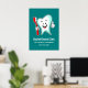 Ein Poster mit einer Illustration eines großen weißen Zahnes im Stil eines Cartoon, der mit Freude eine rote Zahnbürste hält und dem Daumen ein Schild nach oben gibt.