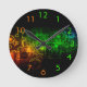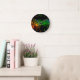 Zahnradmechanik schwarz-grün-orange runde wanduhr
