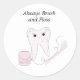 Ein niedliches Design mit rosa Zahnseide und einer Smiley Zahn- und Zahnbürste. Das Sprichwort kann nach Wunsch geändert werden.