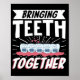 Dieses lustige, orthotontistische Design eines Zahnarztassistenten liest, wie man Zähne zusammenbringt. Das Design ist mit einem Zähnchen versehen.