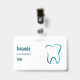 Namensschild mit Abbildung eines Zahnzahs. Gezeichnet mit einer grünen Gradienten-Kontur.