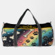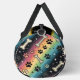 This colorful pattern duffle bag boasts a zany rainbow gradient background featuring various colored paw prints and playful bones with star accents. It's a cute design pet accessory and versatile travel gear, perfect for any pet lover.