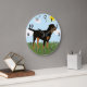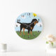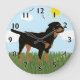 Rottweiler im Cartoon-Stil steht mit ruhigem Ausdruck.