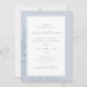 Setzen Sie den Ton für eine zurückhaltende Eleganz an Ihrem besonderen Tag mit unserer zarten blauen floralen Hochzeitseinladung. Perfekt für ein "Etwas Blaues"- oder Küstenhochzeitsthema, diese eleganten Hochzeitseinladungen zeigen zarte blaue Blumen, die perfekt mit staubigem Blau, Schiefer oder Navy-Hochzeitspaletten harmonieren.