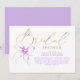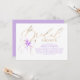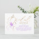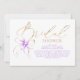 Feiern Sie die zukünftige Braut mit dieser romantischen lila und goldenen Hochzeitsduscheinladung, die elegante Kalligrafie und eine sanfte Wasserfarbenschleife mit zarten Lavendeltönen aufweist.