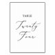 Dieser zarte schwarze Kalligrafietisch mit vierundzwanzig Tischnummern ist perfekt für eine moderne Hochzeit. Das romantische minimalistische Design besticht durch eine hübsche und elegante schwarze Typografie auf weißem Hintergrund mit einem sauberen und schlichten Look. Die Karte druckt auf der Vorder- und Rückseite (beidseitig). Andere Tischnummern in der Sammlung werden separat verkauft.
